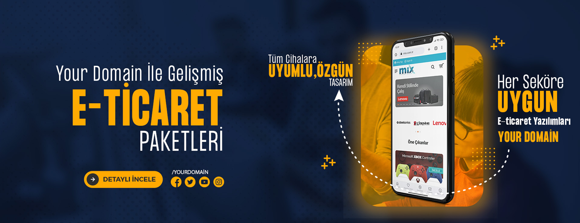 Alan adı, hosting, e-mail, güvenlik, yedekleme, ödeme altyapıları ve tüm yazılım özellikleri e-ticaret paketlerimizde size bir bütün olarak sunuyoruz. Size sadece ürünlerinizi eklemek ve satışa başlamak kalıyor.